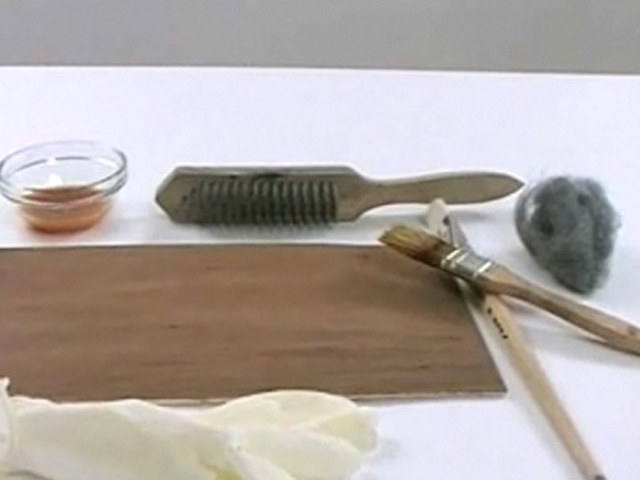 Нам потребуется:вода, белая акриловая краска, шеллак, железная щетка, алюминиевая губка, кисти, доска.